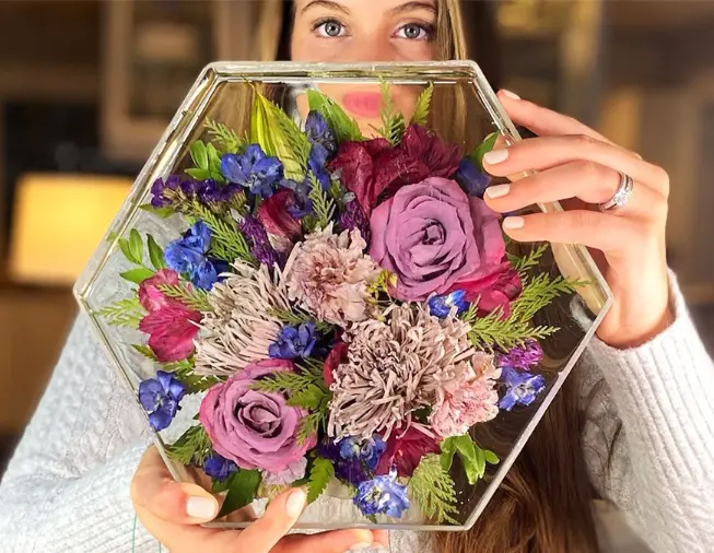 We professionally preserve your actual wedding flowers into timeless keepsakes.